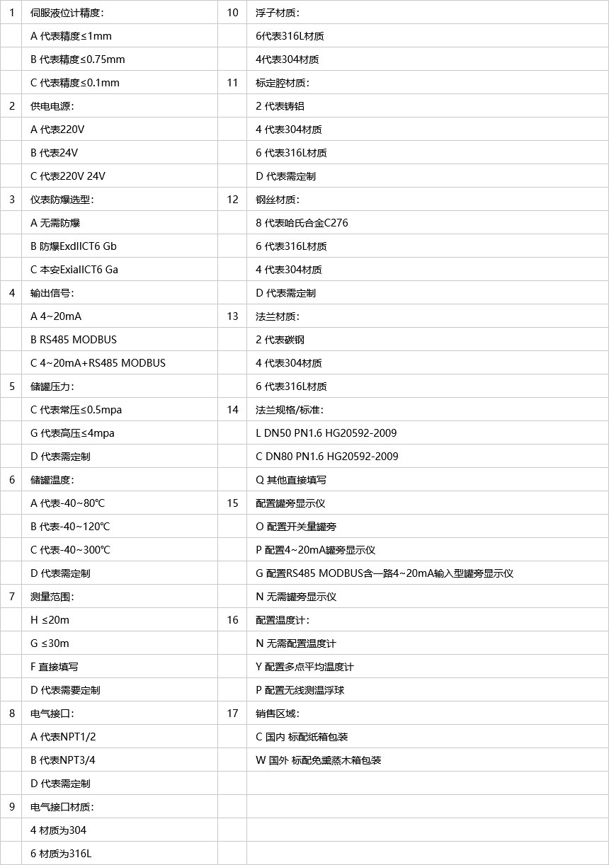 伺服液位計通信方式4-20mA/HART、RS485 MODBUS